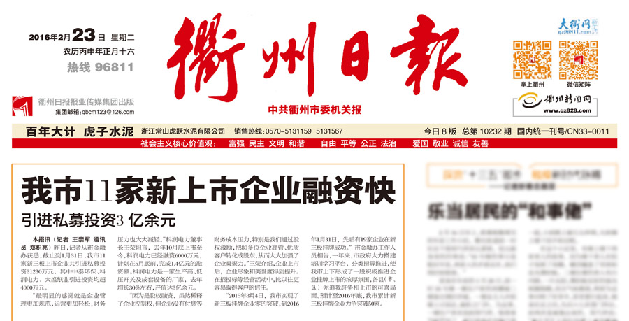 “2015年8月4日,我市實現了新三板掛牌企業零的突破,到2016年1月31日,先后有19家企業在新三板掛牌成功。”市金融辦工作人員相告,一年來,市政府大力搭建培訓學習平臺,分類指導推進,使我市上下形成了一股積極推進企業掛牌上市的濃厚氛圍,各縣(市、區)你追我趕爭相上市的可喜局面。預計至2016年底,我市累計新三板掛牌企業力爭突破50家。
