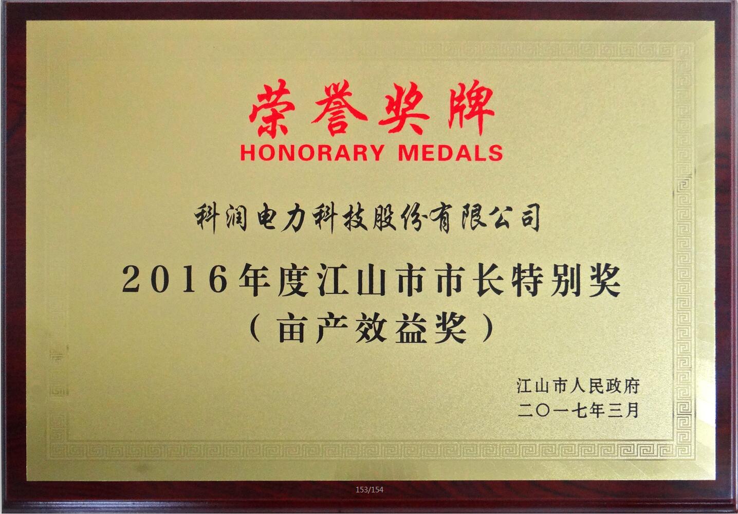 喜訊:科潤電力榮獲江山市市長特別獎——畝均效益獎二等獎