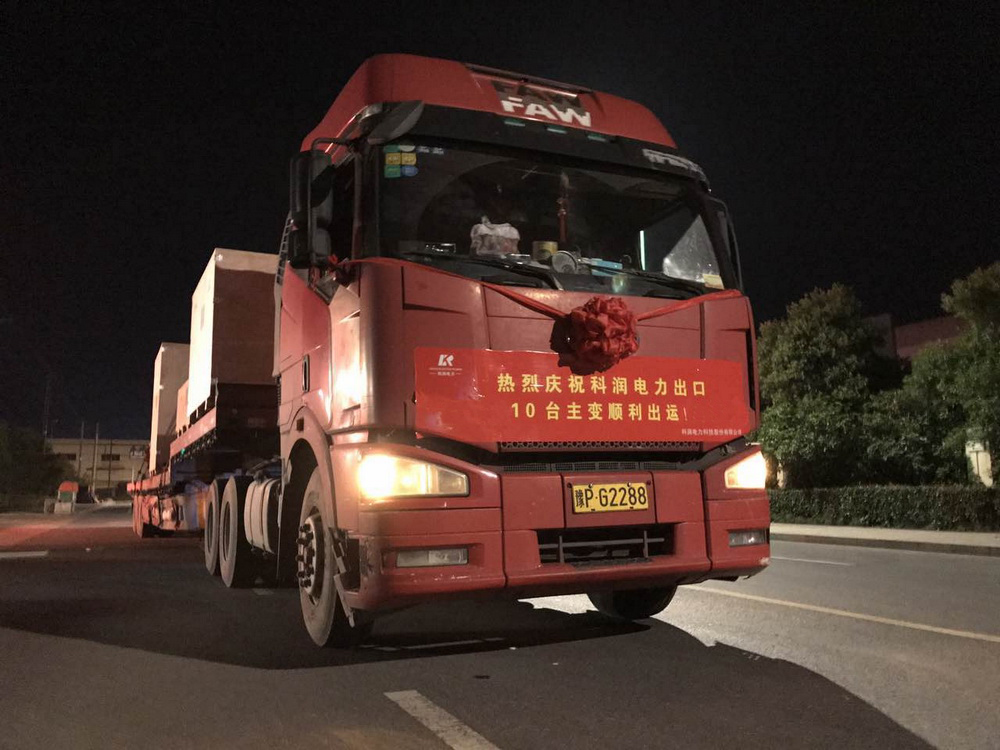 2017年5月26日,公司出口的10臺(tái)20000kVA超大容量變壓器中的首批兩臺(tái),披紅掛彩,浩浩蕩蕩開出廠區(qū),這標(biāo)志公司生產(chǎn)的變壓器質(zhì)量和信譽(yù)得到國際認(rèn)可,公司的形象得到進(jìn)一步提升,為公司拓展外貿(mào)市場(chǎng),打造世界一流的產(chǎn)品邁出堅(jiān)實(shí)的一步。