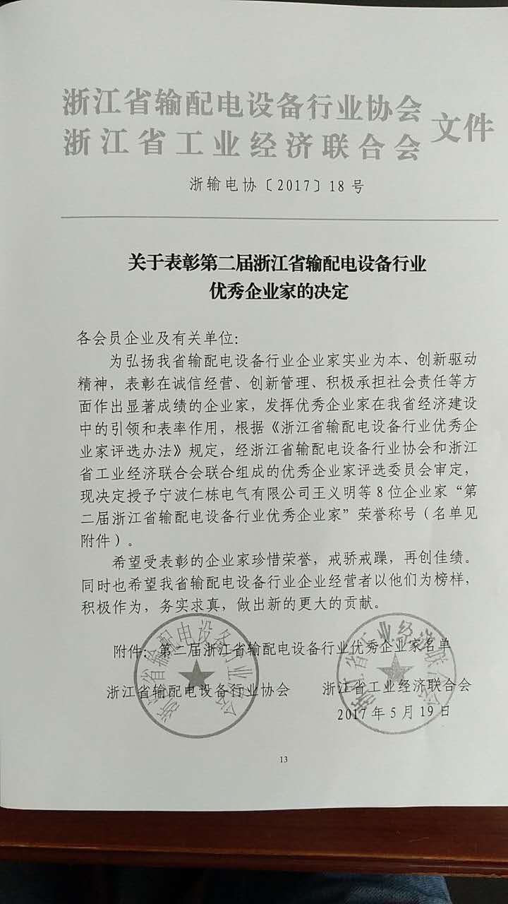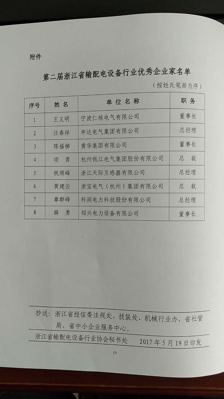 協會副秘書長在會上分別通報了協會2017年新增會員名單和會費收繳情況、第二屆行業優秀企業家和2016年度行業優秀新產品評審結果。科潤電力科技股份有限公司總經理章群峰榮獲第二屆浙江省輸配電設備行業優秀企業家!