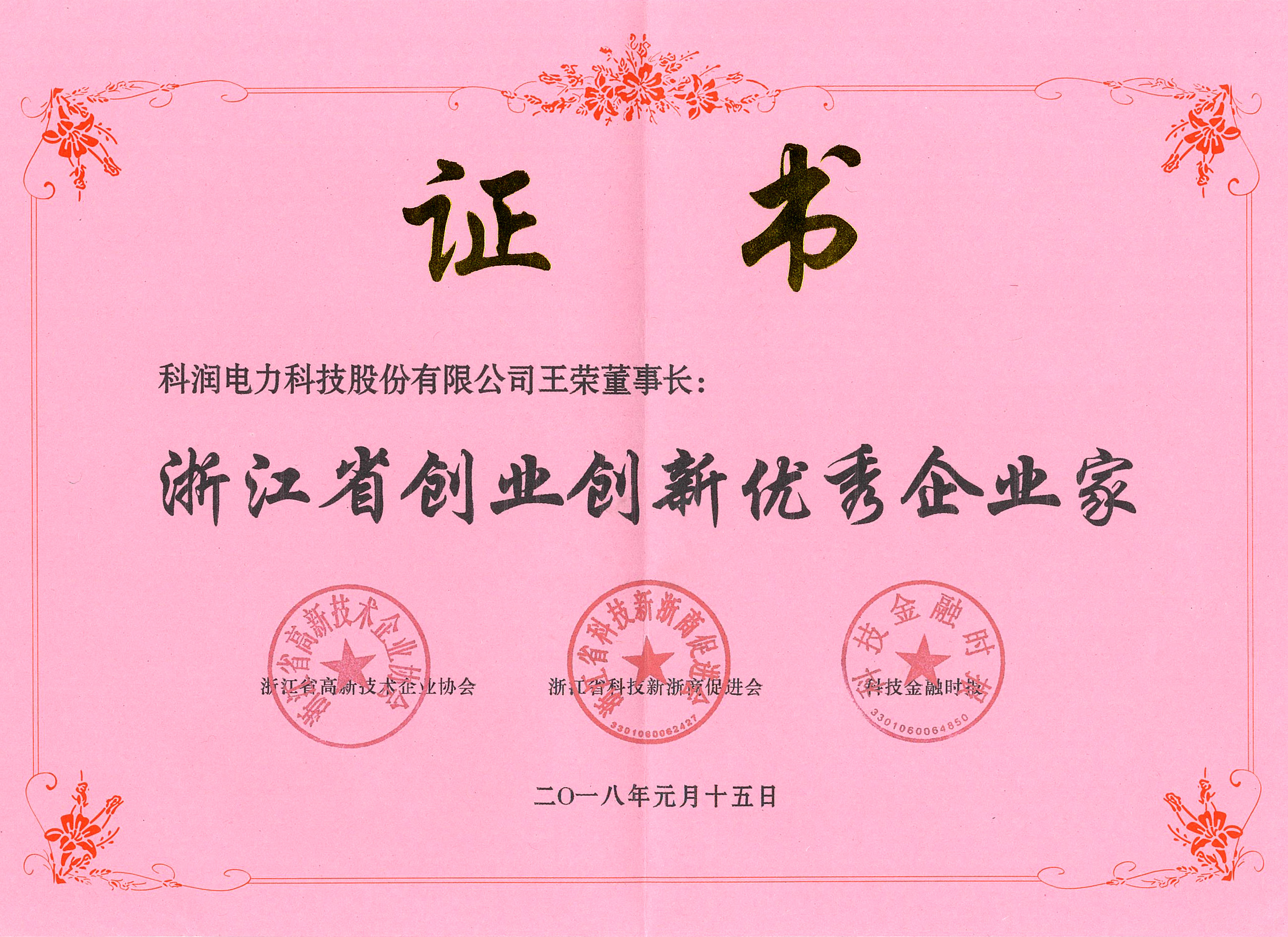 喜訊:公司董事長獲“浙江省創業創新優秀企業家”