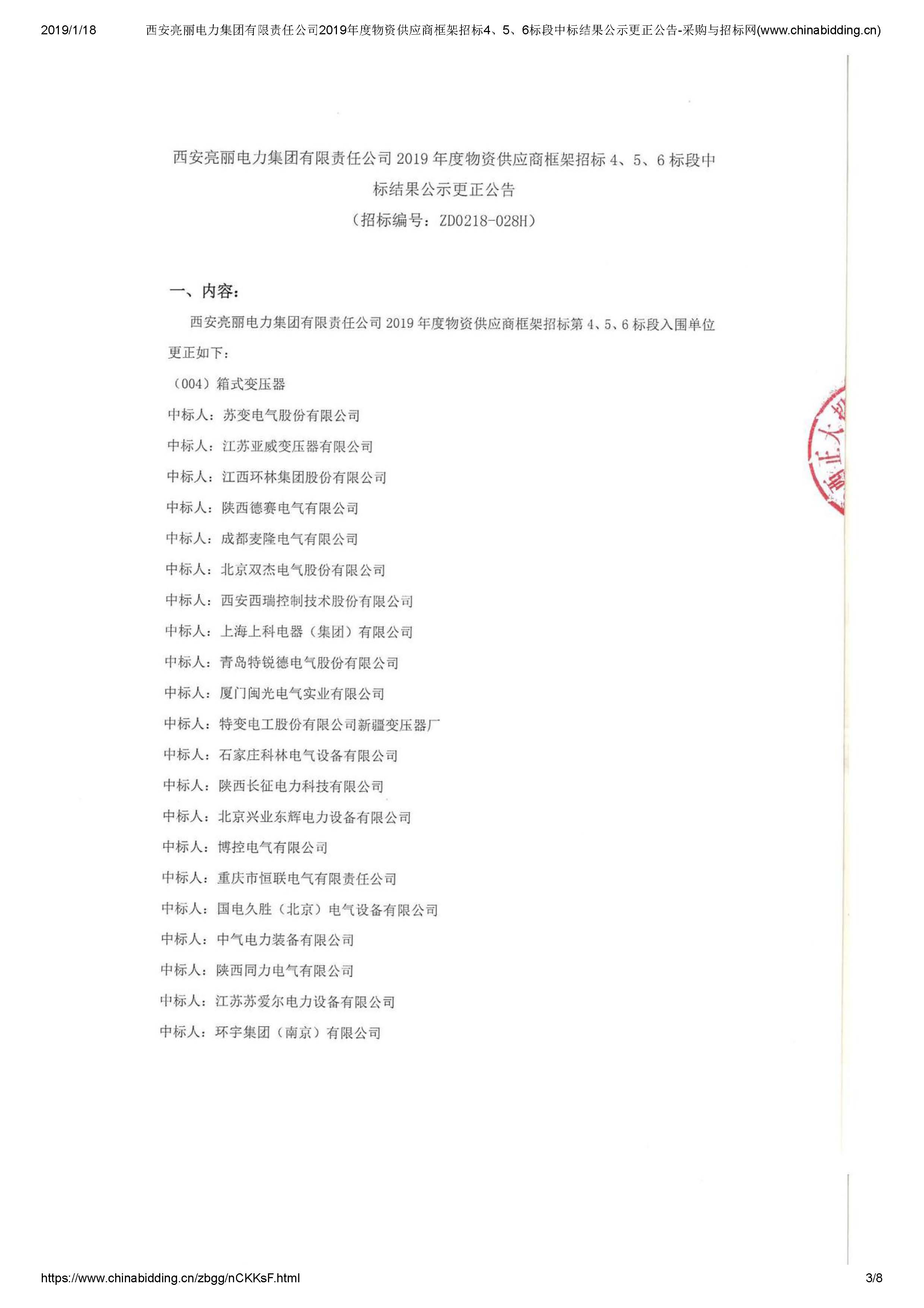 2、西安亮麗電力集團有限責任公司2019年度物資供應商框架招標4、5、6標段項目