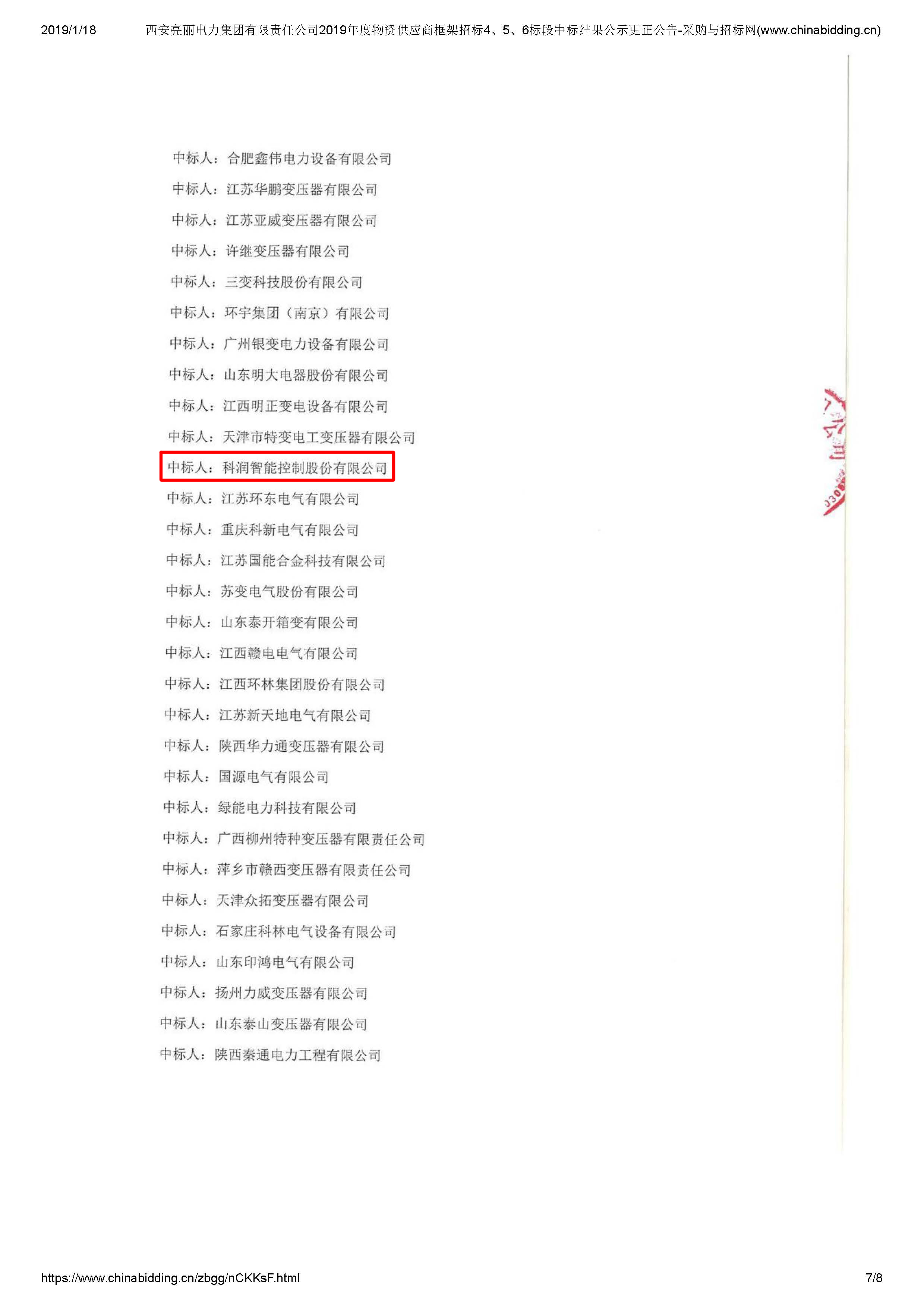 近日,捷報頻傳,科潤智能控制股份有限公司接連中標了國網湖南省電力有限公司2018年集體企業物資協議庫存項目;西安亮麗電力集團有限責任公司2019年度物資供應商框架招標4、5、6標段項目。公司產品再度邁進了國網平臺高起點的良好銷售經營模式,實現了2019年的開門紅!讓全體科潤人倍感振奮、倍受鼓舞!