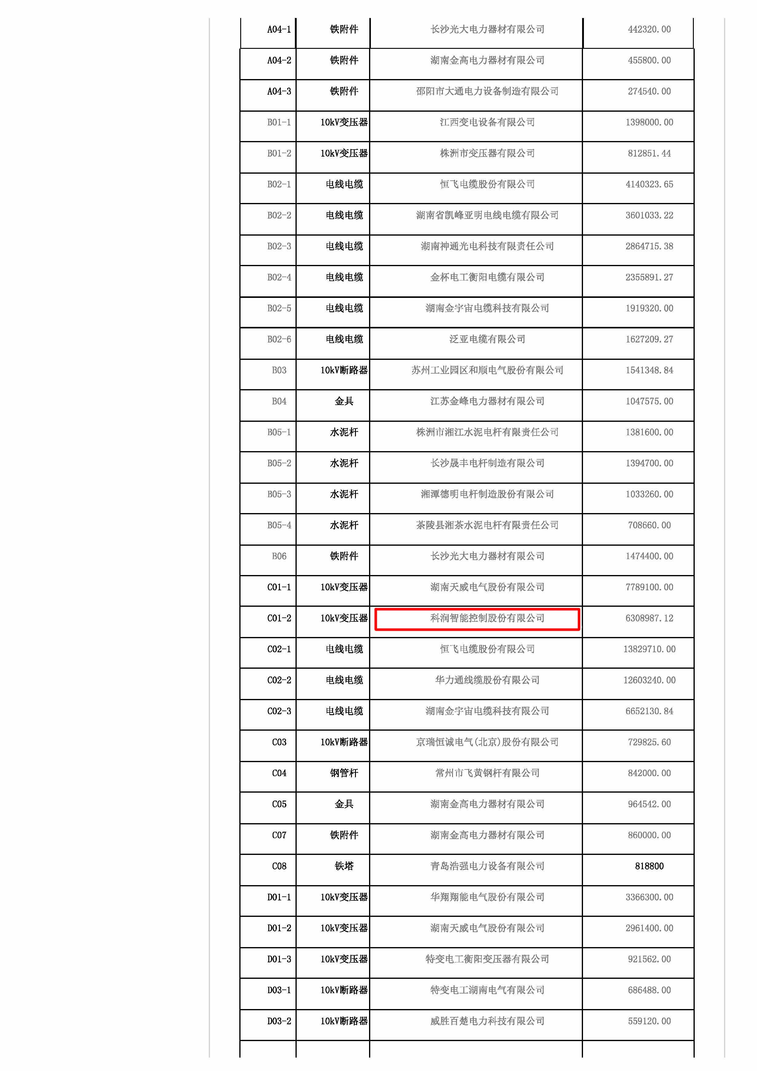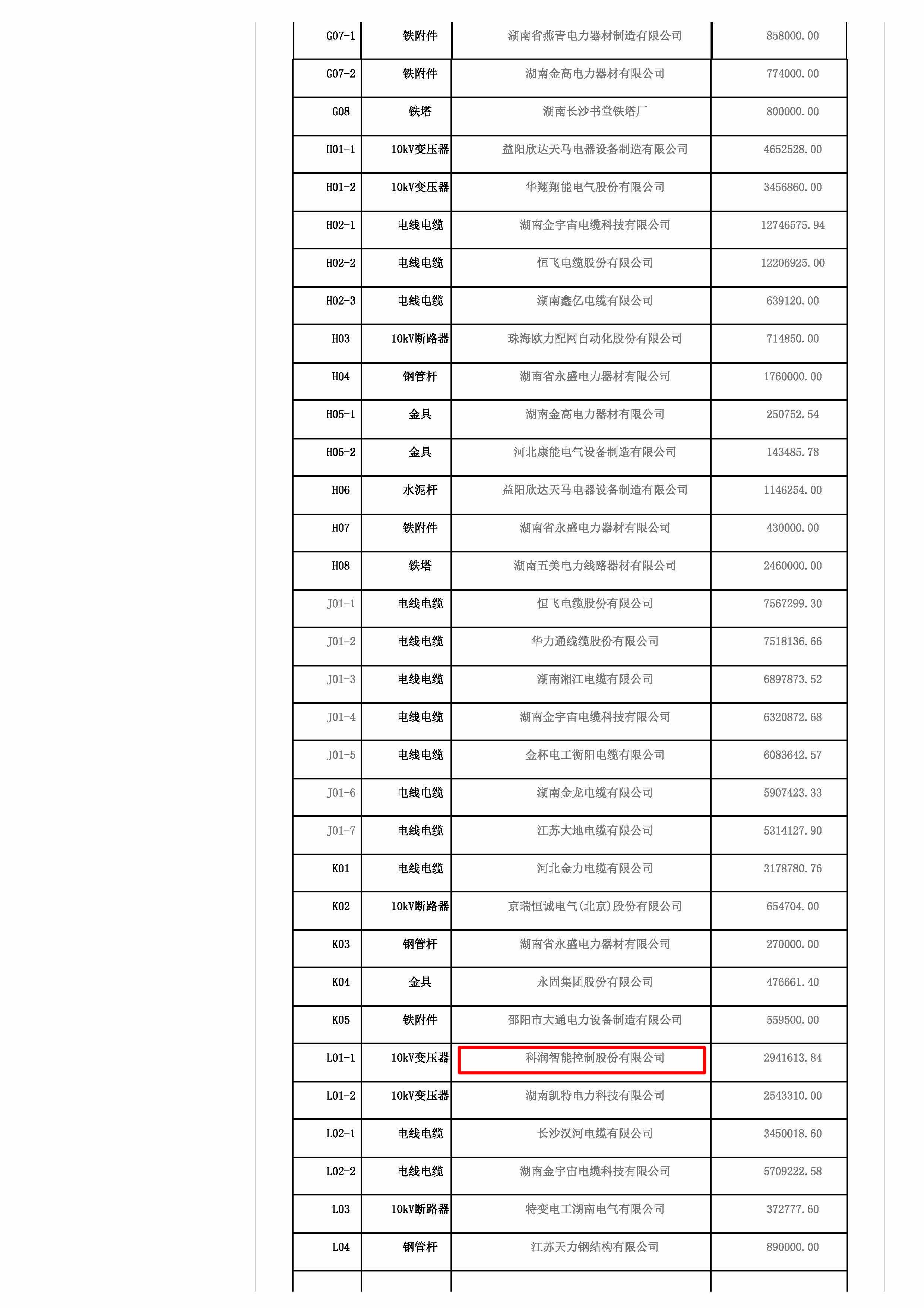 1、國網湖南省電力有限公司2018年集體企業物資協議庫存項目,中標金額:16882781.52元。