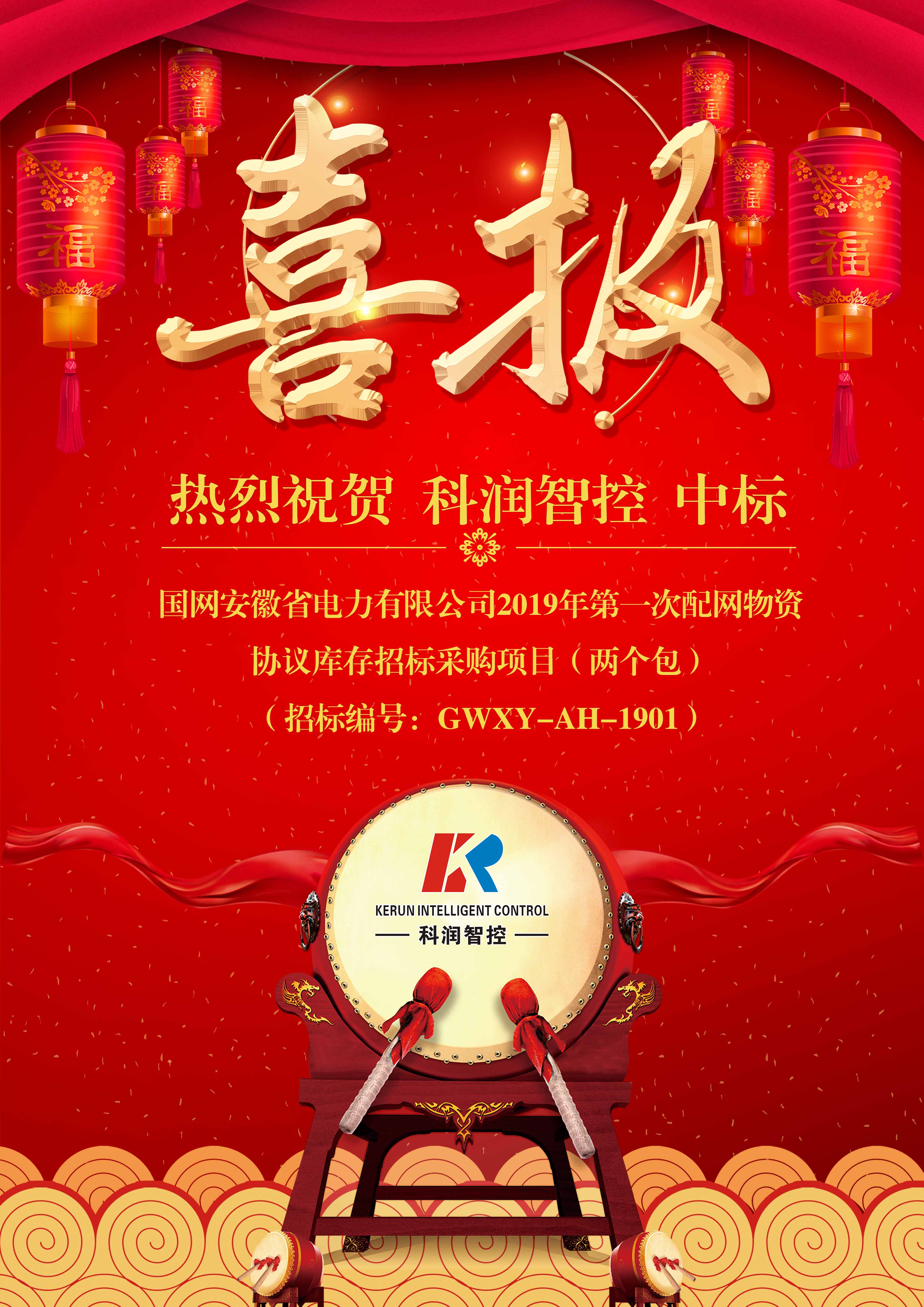 熱烈祝賀科潤智能控制股份有限公司中標(biāo)國網(wǎng)安徽省電力有限公司2019年第一次配網(wǎng)物資協(xié)議庫存招標(biāo)采購項目(兩個包)(招標(biāo)編號:GWXY-AH-1901)。