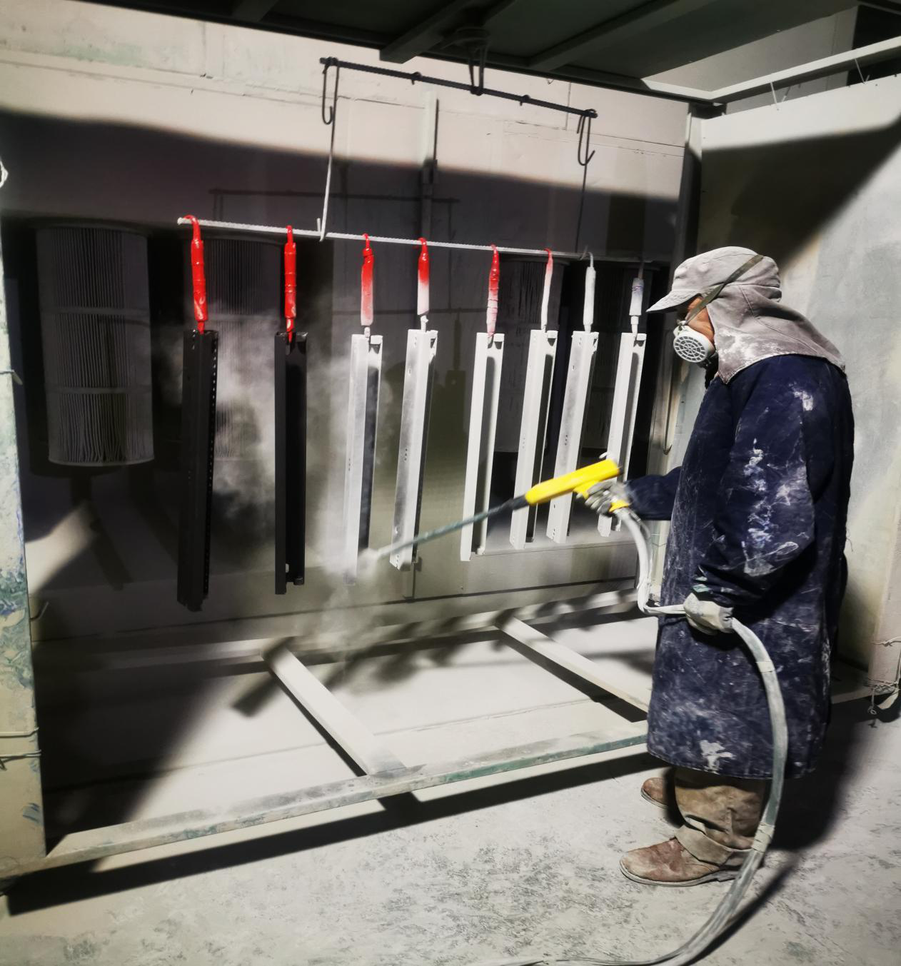 電氣事業部鈑金車間噴塑組成員每日奮戰至晚上9點,他們不畏的艱苦環境,一直凝視著眼前的噴塑器件,以防出現差錯。他們始終以飽滿的工作熱情,通力協作,埋頭苦干。