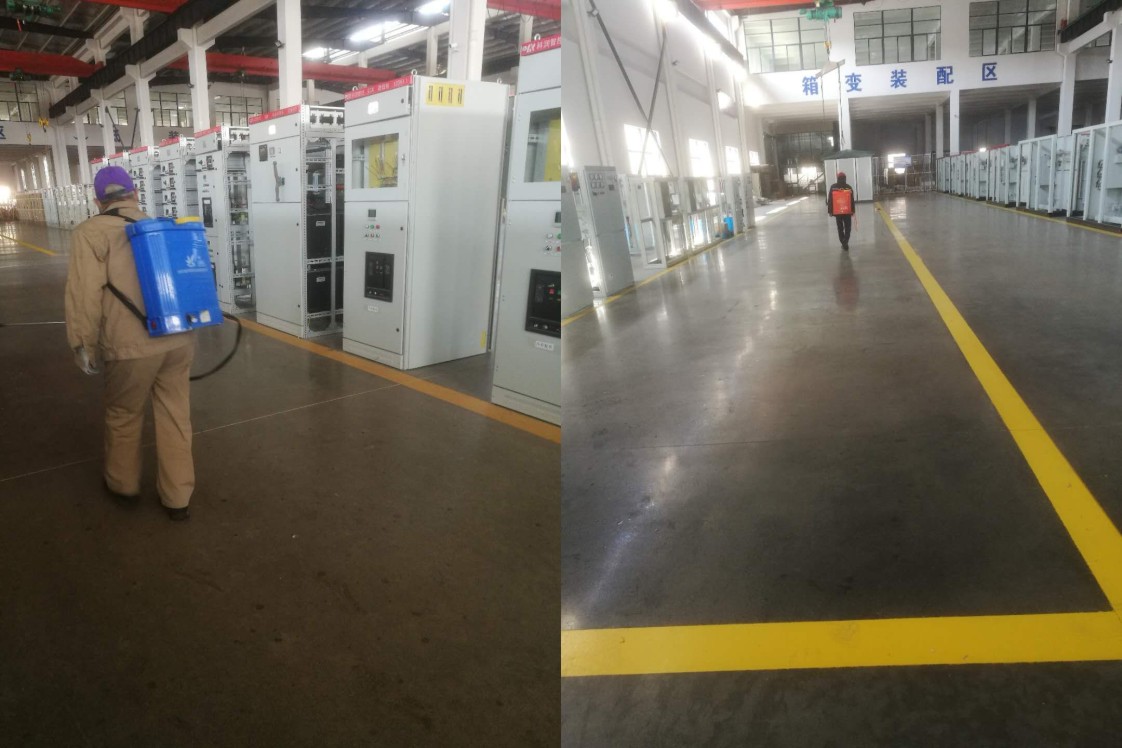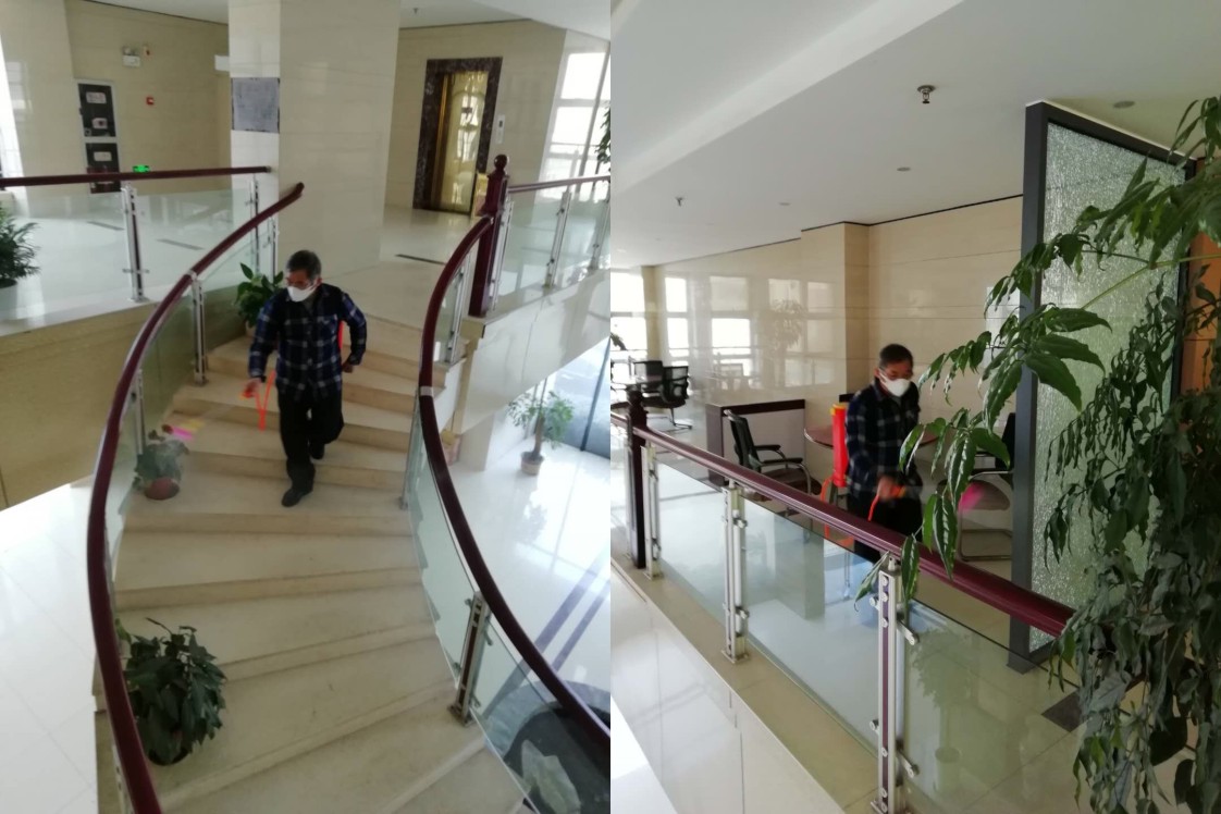2020年2月9日上午,公司老黨員樂田光同志積極發(fā)揮黨員模范先鋒作用,用84消毒液對三個事業(yè)部的生產(chǎn)區(qū)域、辦公大樓、各辦公室、公共區(qū)域包括食堂、電梯、樓道、衛(wèi)生間以及停車場和車輛等進行消毒,讓員工有個放心的工作環(huán)境,為復(fù)工保駕護航。