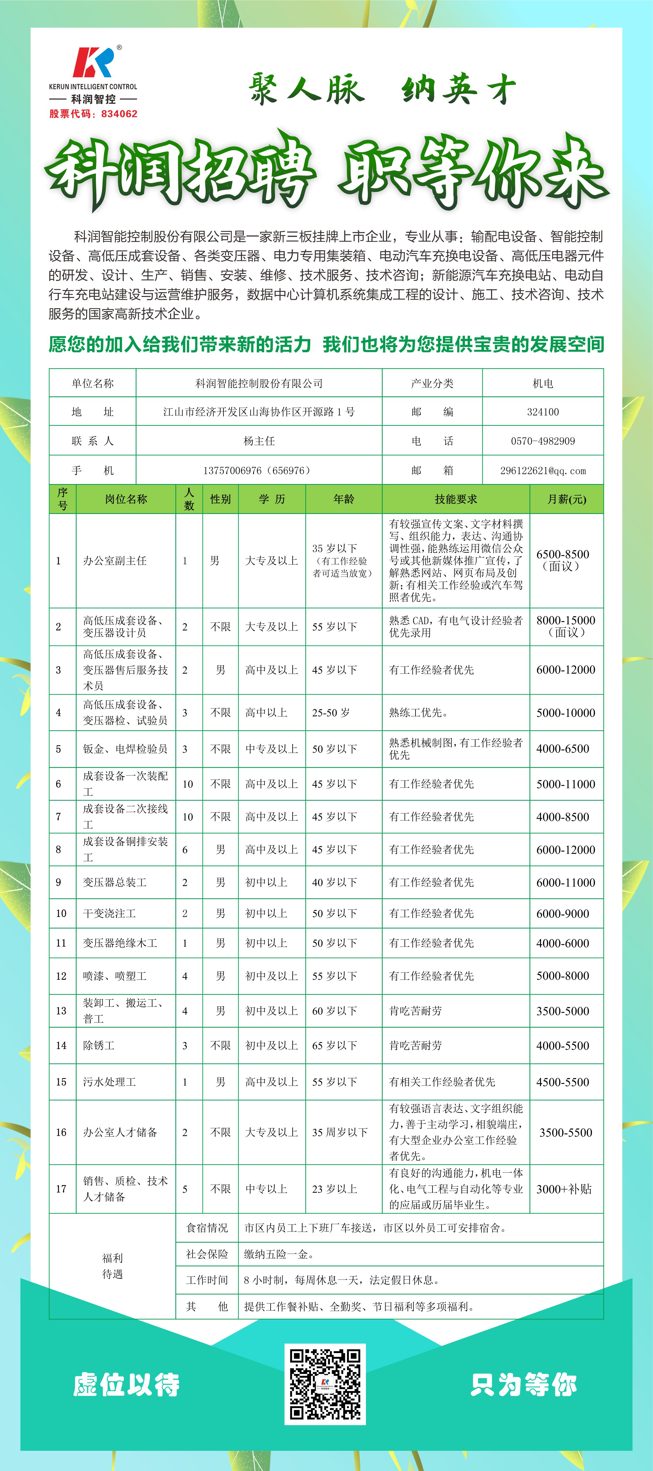 親,等您好久了!歡迎關注科潤微信平臺,動動您尊貴的手,即可與我們實現零距離溝通,快來參與吧!