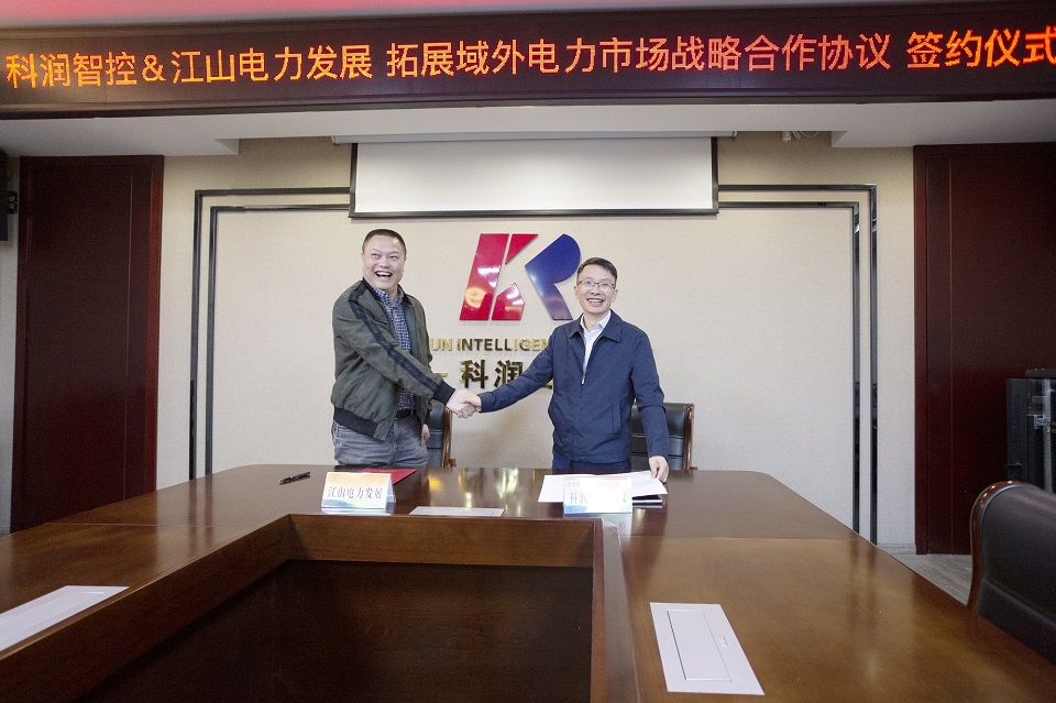 4月7日,科潤智能控制股份有限公司與江山市電力發展有限責任公司簽署拓展域外電力市場的戰略合作協議。科潤智控王榮董事長和江山電力發展薛利兵總經理代表雙方簽約。