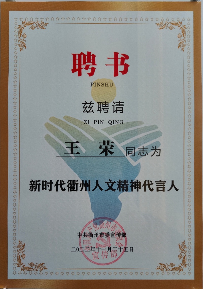 喜報(bào)!王榮董事長被聘為新時(shí)代衢州人文精神代言人