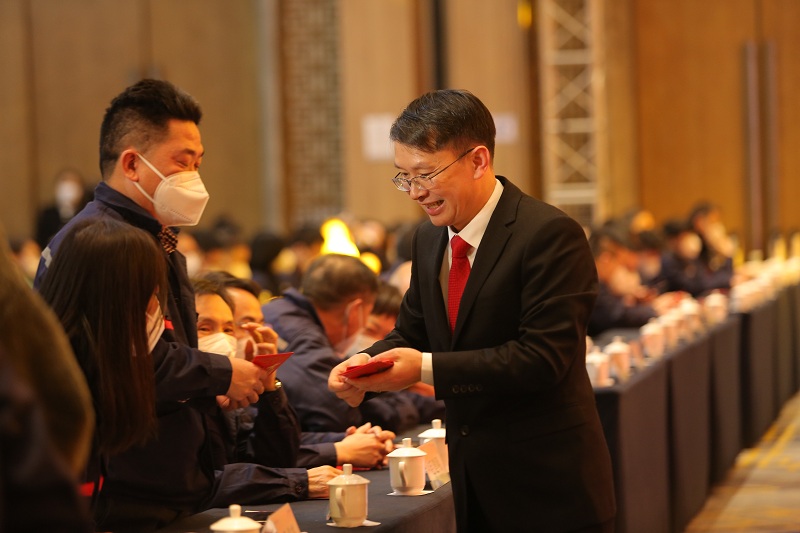 會議最后,王榮董事長攜公司領導給全體員工發放新年紅包。