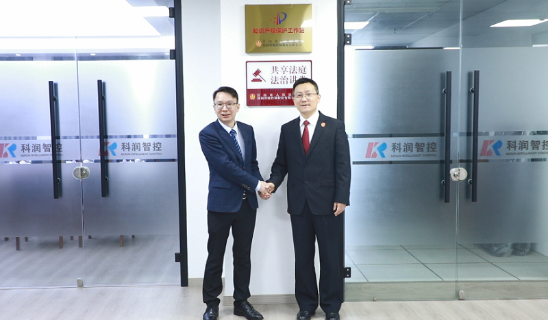 為進一步優化法治化營商環境,加強知識產權司法保護,4月6日,江山法院知識產權保護工作站在江山市裝備制造行業協會會長單位科潤智能控制股份有限公司揭牌成立。揭牌儀式上,公司董事長王榮與法院黨組書記、院長阮鐵軍共同為工作站揭牌。公司總經理章群峰,法院黨組副書記、副院長夏士盛等參加。